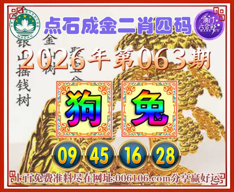 063期:《点石成金》  ♣️二肖四码 ♣️【狗】【09.45.16.28】开:兔28准公开见证
