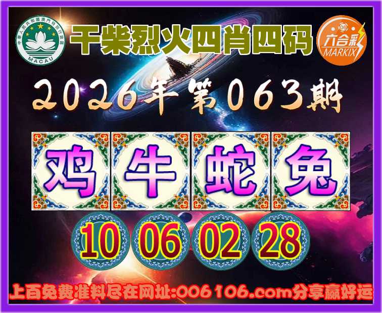 063期:〖干柴烈火〗 🌲四肖四码🌲【鸡牛蛇】【10.06.02.28】开:兔28准公开见证