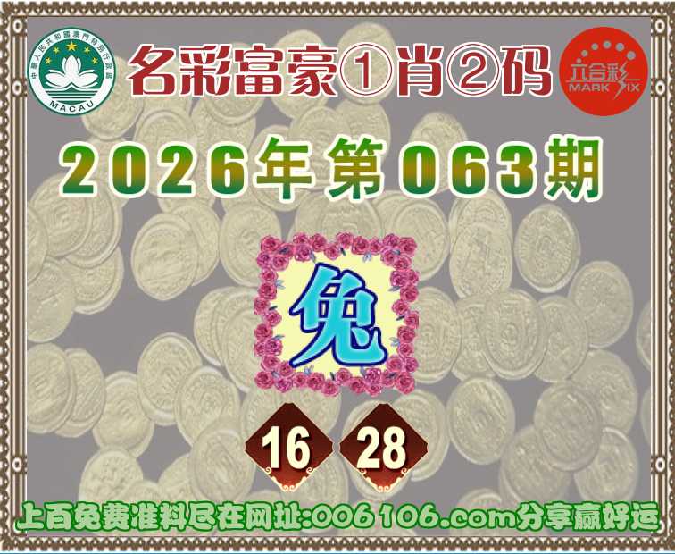063期:〖名彩富豪〗 ♣️①肖②码♣️【】【16.28】开:兔28准公开见证